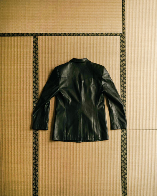 Leather Double Breasted Blazer / USD.190