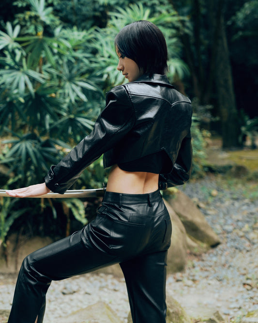 Leather Cropped Jacket / USD.513