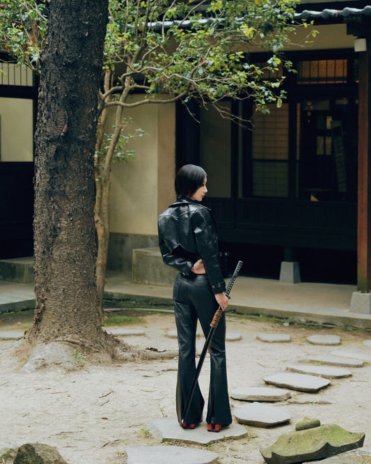 Leather Cropped Jacket / USD.513
